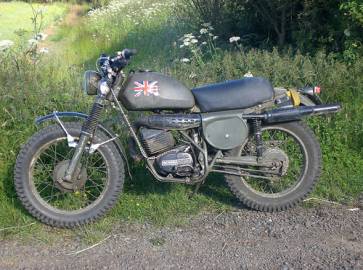 The Military Model was very heavily based on the mid '70s TNT model (Track 'n' Trail). The bike has a 250cc rotax engine, and is a single cylinder 2-stroke rotary valve, developing 26 bhp at 7,500 rpm. The UK Armed Forces had approximately 5,000 of the Military Model with dates into service between 1978 and 1980.