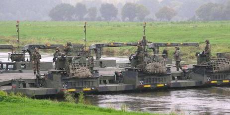 3 German Army M3s linked for light vehicle crossing