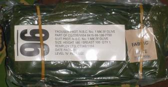 The British "SUIT PROTECTIVE NBC No1 Mk-IV", (which replaced the "SUIT PROTECTIVE NBC No1 Mk-III" in 1986), NATO Stock Nunber