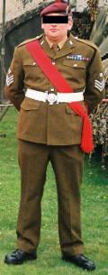 Infantry Warrant Officers and SNCOs wear a red sash over the right shoulder to the hip and Soldiers wear a white or