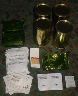 circumstances where each man has to be independent and carry his own food. The ration weighs 3.4lb/1.54kg, and has a