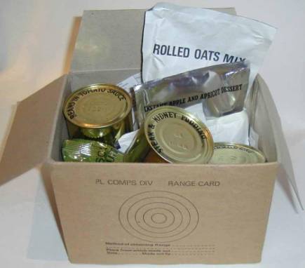 various composite rations, special Pacific packs, jungle ration, AFV (armoured fighting vehicle) ration and mountain (Arctic)